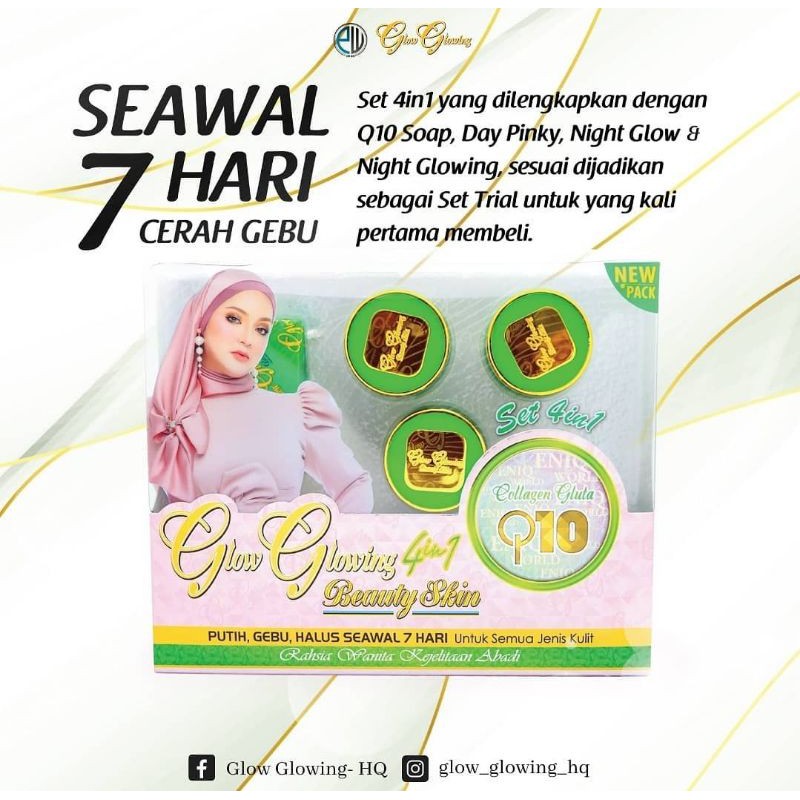 Cream Glow Glowing Malaysia Fungsi Kelebihan Kebaikan Manfaat Glow Glowing Beauty Skin Set 4 In 1 5in1 Yang Mau Wajahnya Glowing Memang Cream Ini Yg Tepat Collagen Gluta Q 10 Soap Membersih Kulit Wajah